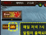 이벤트 입장 시간매일 19시 25분 부터 19시 30까지 우측 알림마크